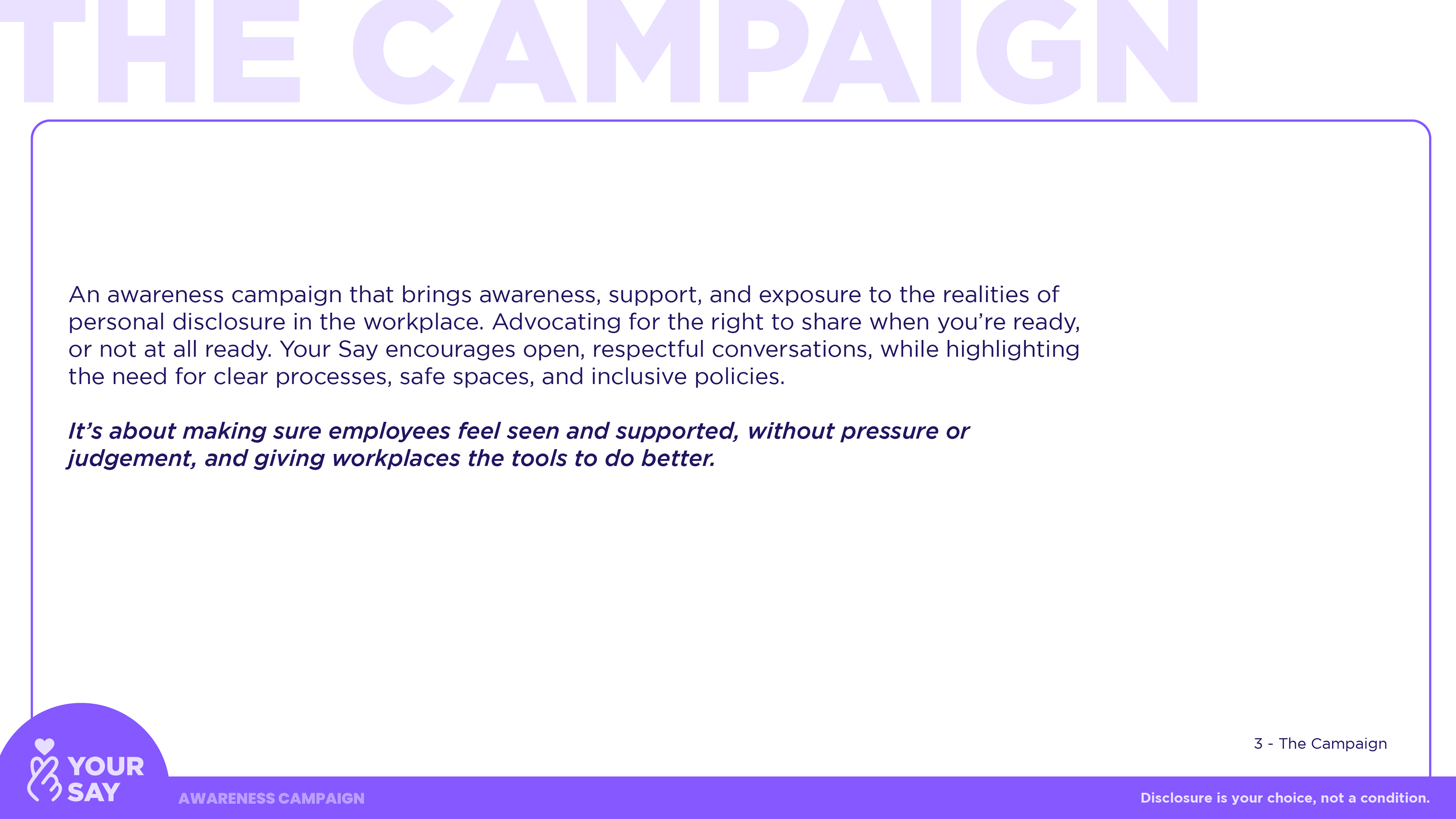 Your Say is an awareness campaign that promotes open, voluntary disclosure